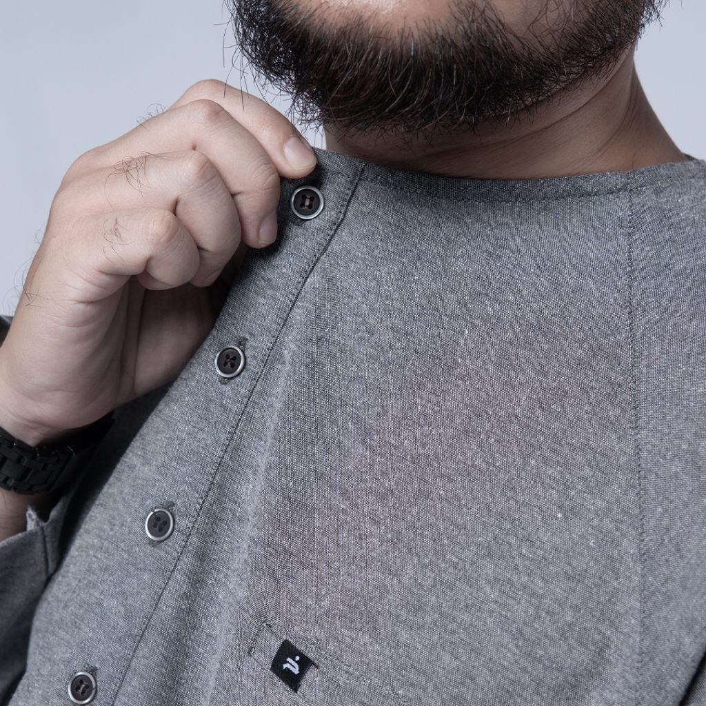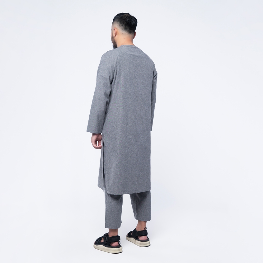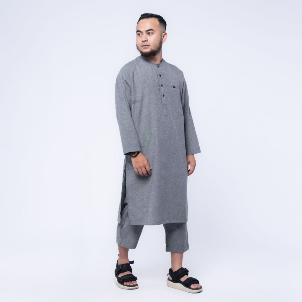 KHOIRUMMAH Kurta Set Ahbab - Koko Kurta Stelan Polos Pria Lengan Panjang - Light Grey