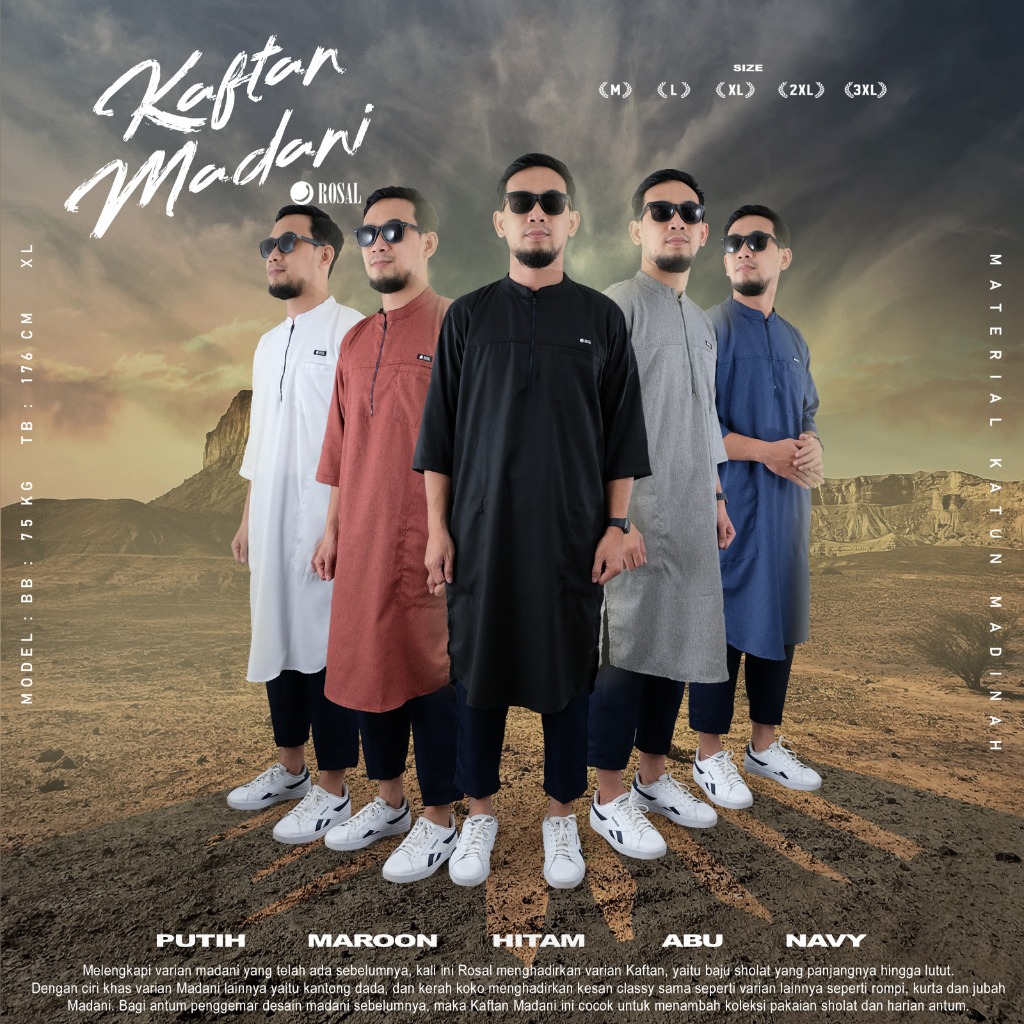 Koko Kurta Pakistan Madani Pria Big Size M-3XL – Lengan 3/4 – Adem, Nyaman untuk Ibadah & Harian