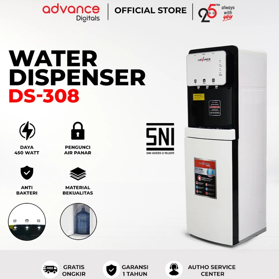 Advance Dispenser Galon Bawah 3 Kran Panas Dingin Hot and Cool - DS308 - FREE ONGKIR Jabodetabek