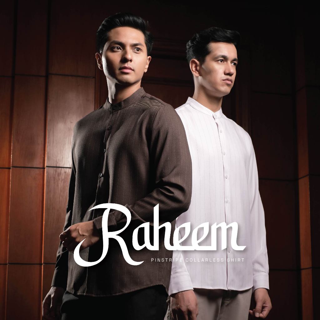 CUTOFF Raheem Pinstripe Collarless Shirt Kemeja Koko Salur Garis Pria Lengan Panjang