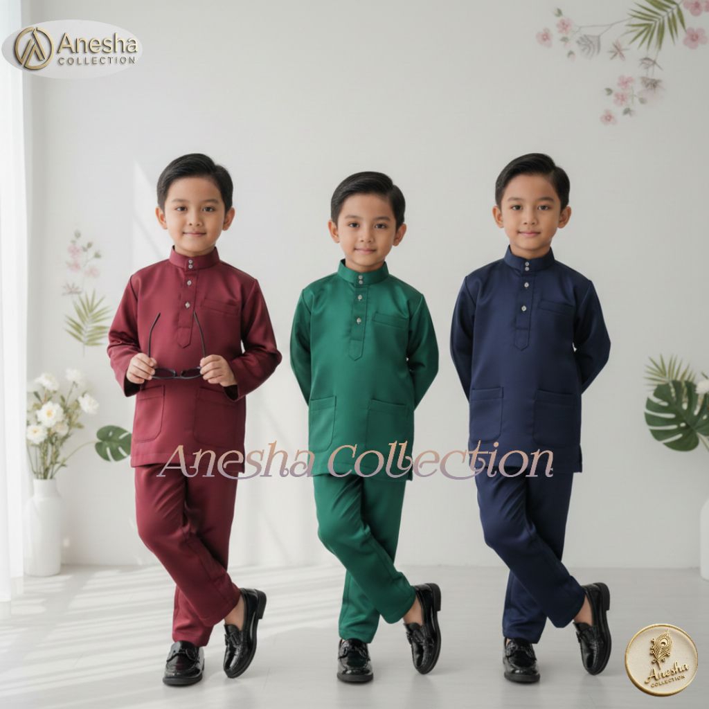set Baju celana anak laki-laki melayu cekak musang || baju koko muslim anak satin velvet premium