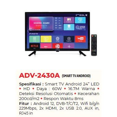 ADVANCE LED TVD-ADV2430A Smart TV 24" Inch TV LED DIgital Smart android youtube netflix vidio