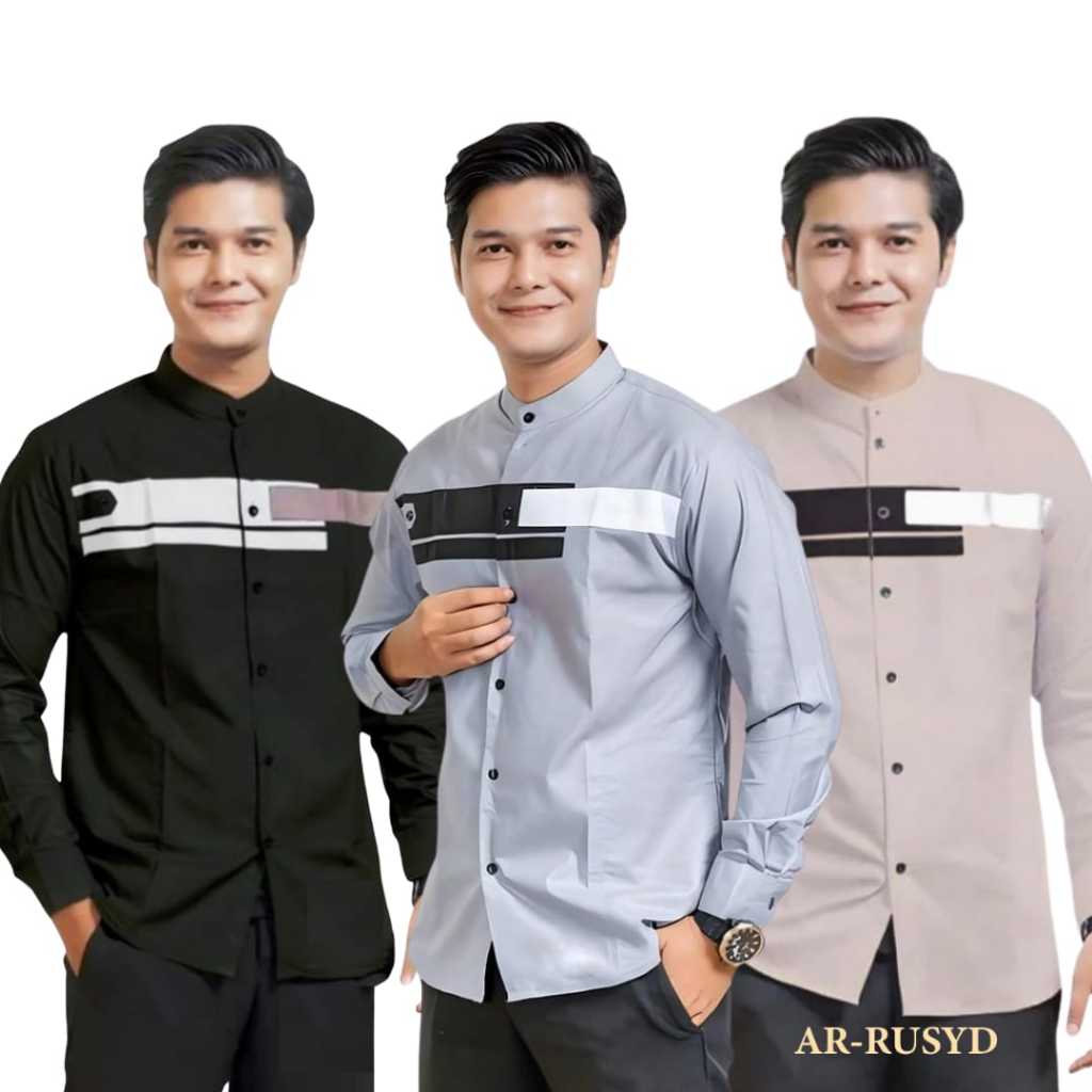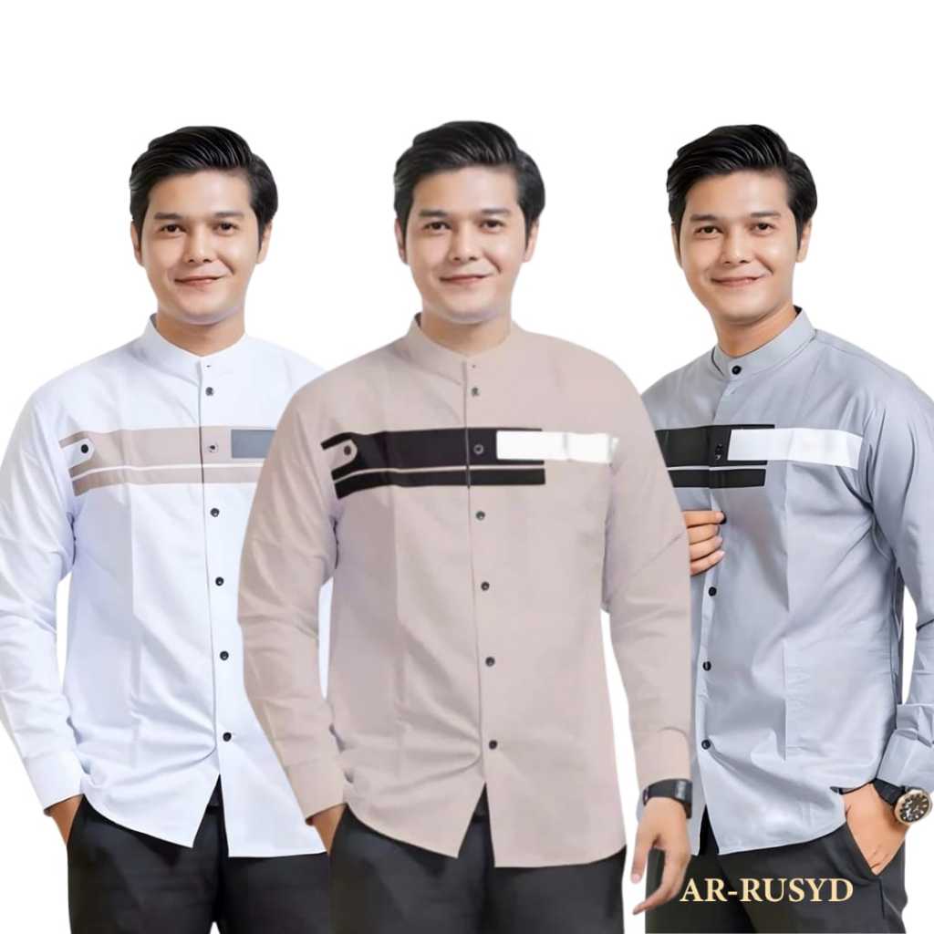 Paket Hemat 3 pcs Baju Koko Pria Dewasa Lengan Panjang Motif Yordan Slim fit