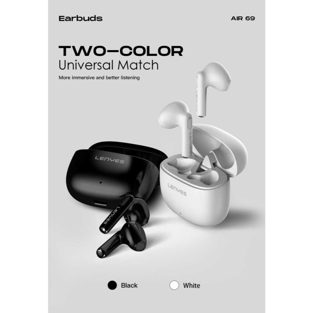 LENYES AIR 69 TWS WIRELESS EARPHONE BLUETOOTH 5.4 HEADSET SMART TOUCH HIFI STEREO EARBUDS ORIGINAL OFFICIAL STORE