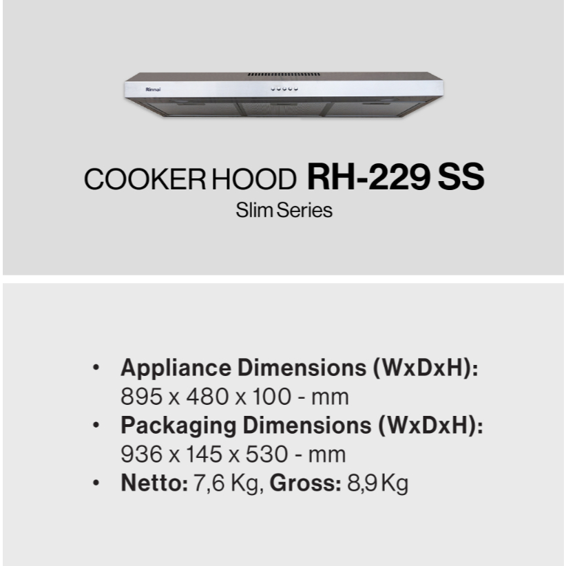 Rinnai RH-229B I RH-229SS Cooker Hood Penghisap RH 229 B / RH 299 SS