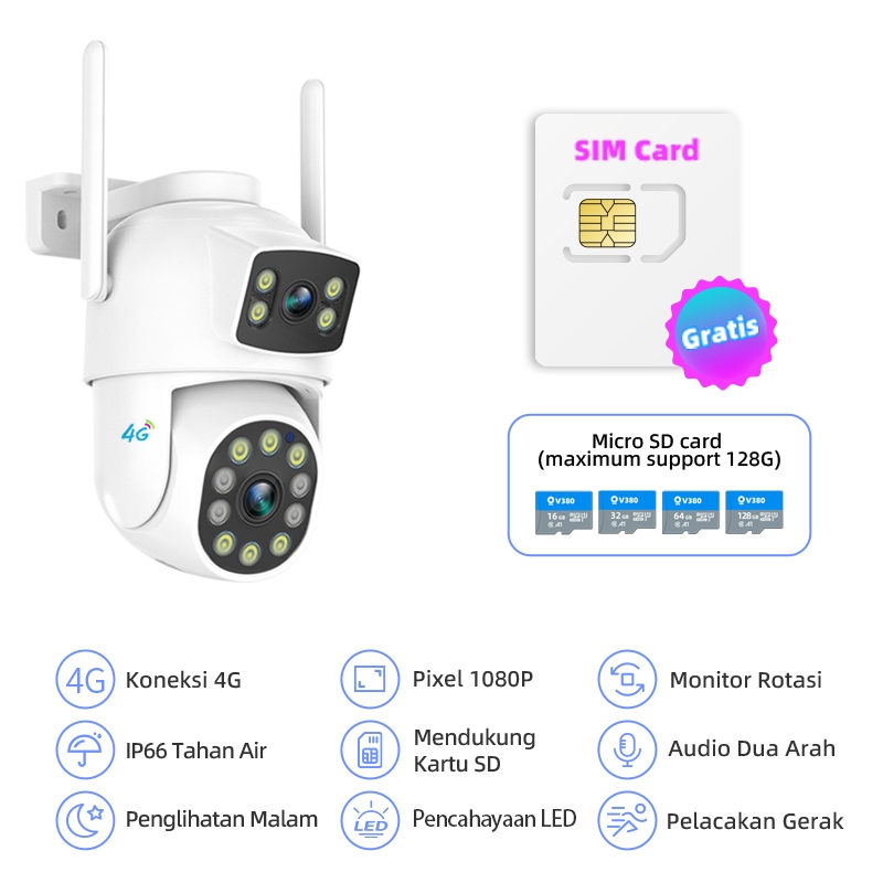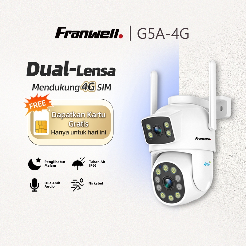 Franwell 4G CCTV Outdoor Dual Lens | 1080P Night Vision | Audio Dua Arah | Gratis SIM | Tahan Hujan