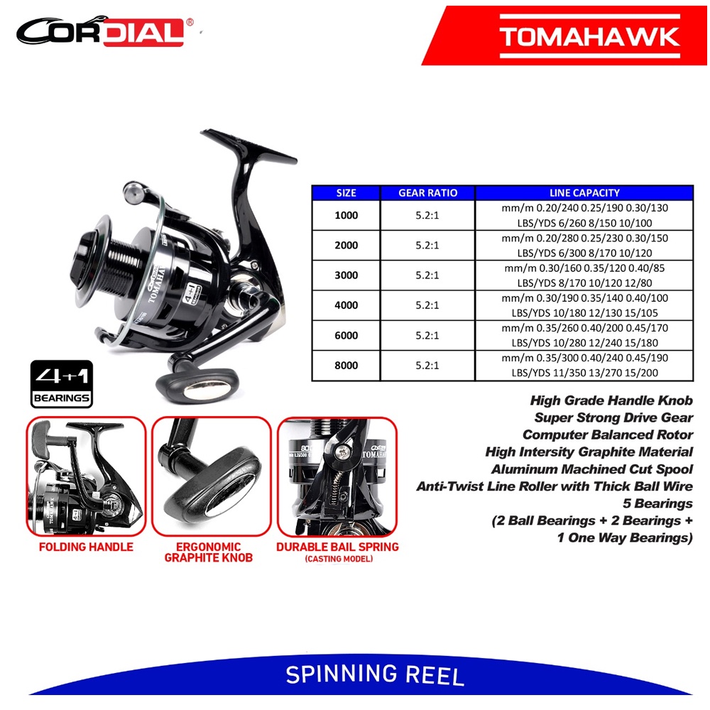 Reel Spinning Cordial Tomahawk Ukuran 1000-8000 Elegan