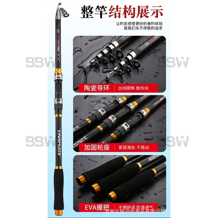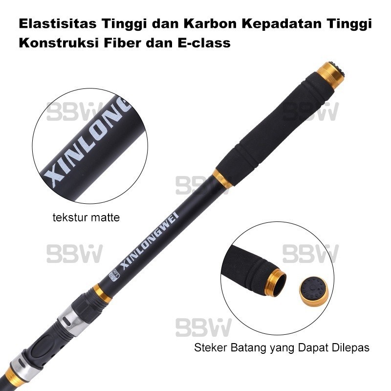 Joran Pancing BBW Spinning Teleskopik bon Fiber - Panjang 1.8m-3.6m, Tersedia 6 Warna - Ringan dan Portable untuk Travel