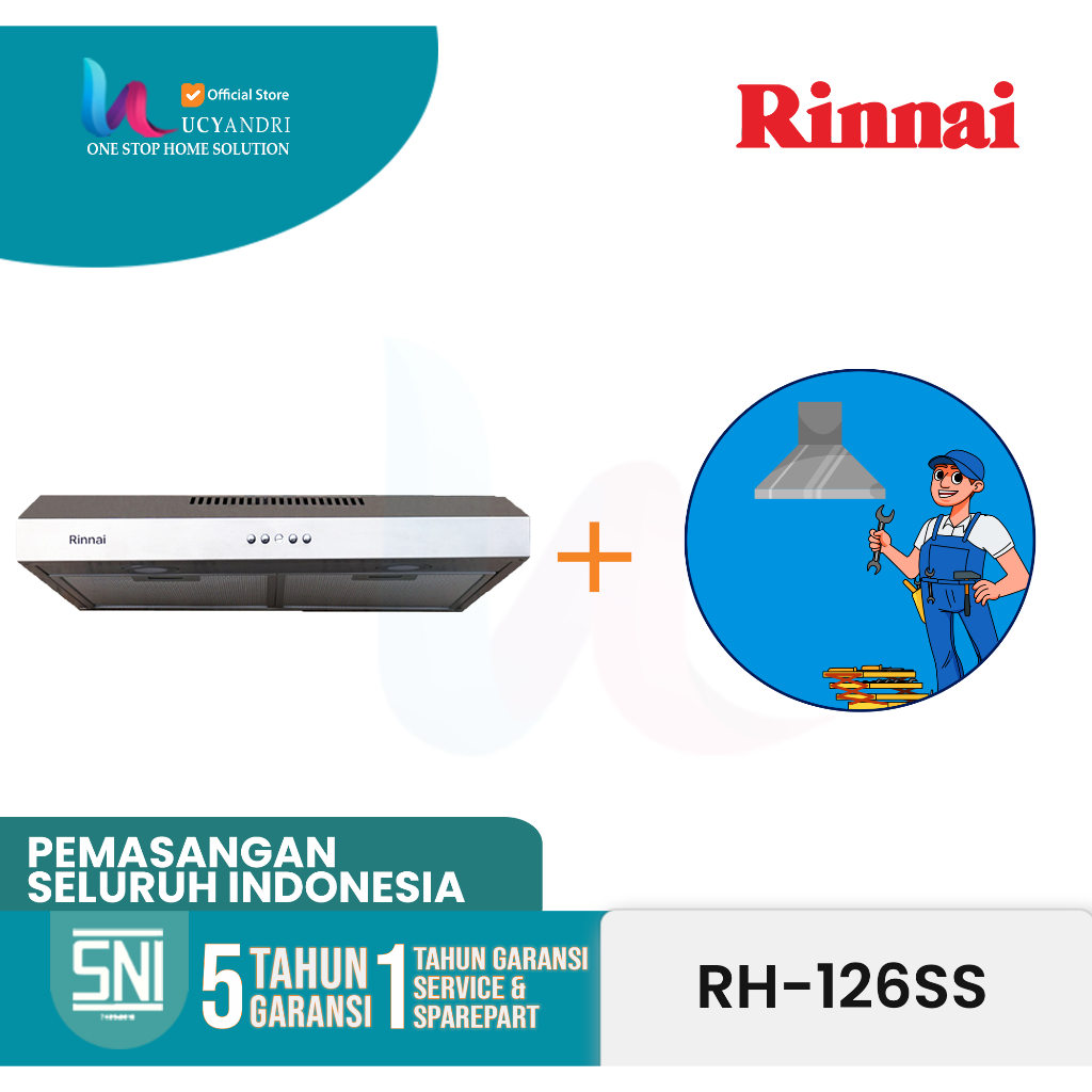 Rinnai RH 126 SS Cooker Hood – Penghisap Asap Dapur, 2 Motor, Stainless Steel