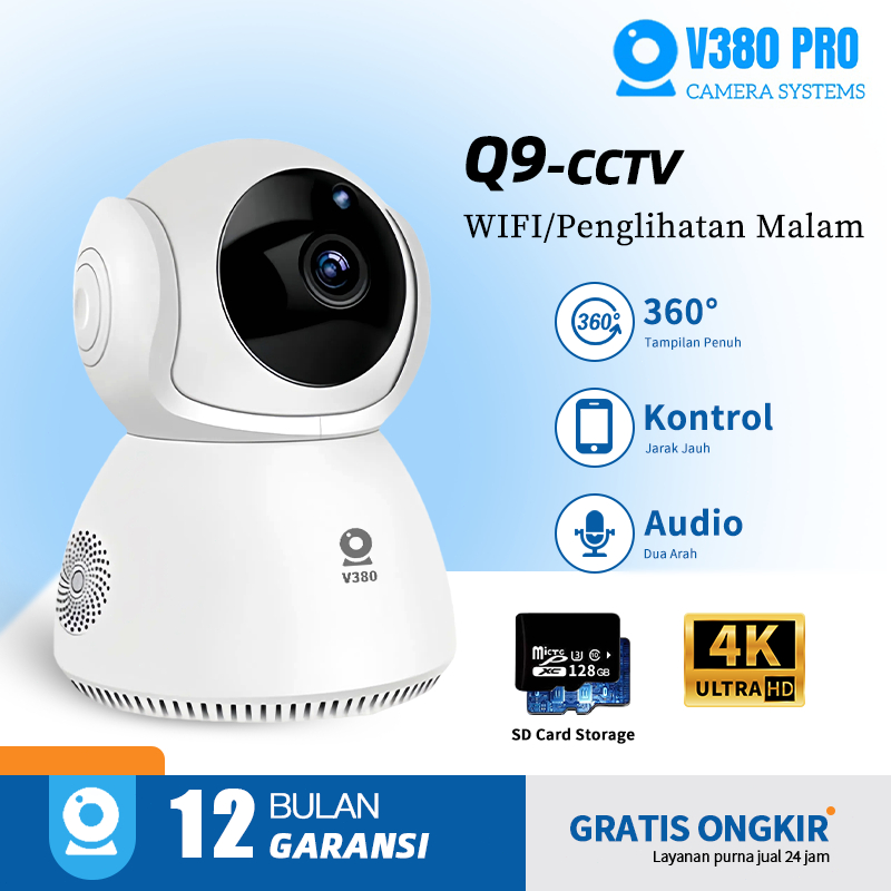 V380 CCTV Smart lndoor WiFi Kamera Two-Way Voice 360 PTZ Panoramic Auto Tracking Jarak Jauh HP