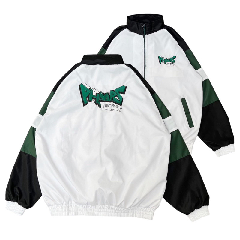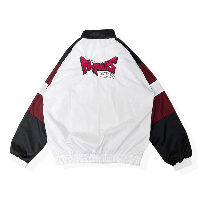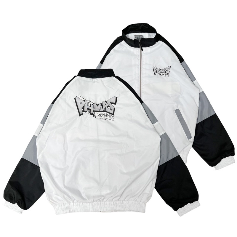 PHOMPPHIESS Jaket Retro Putih Strip Jacket Sport Pria Wanita