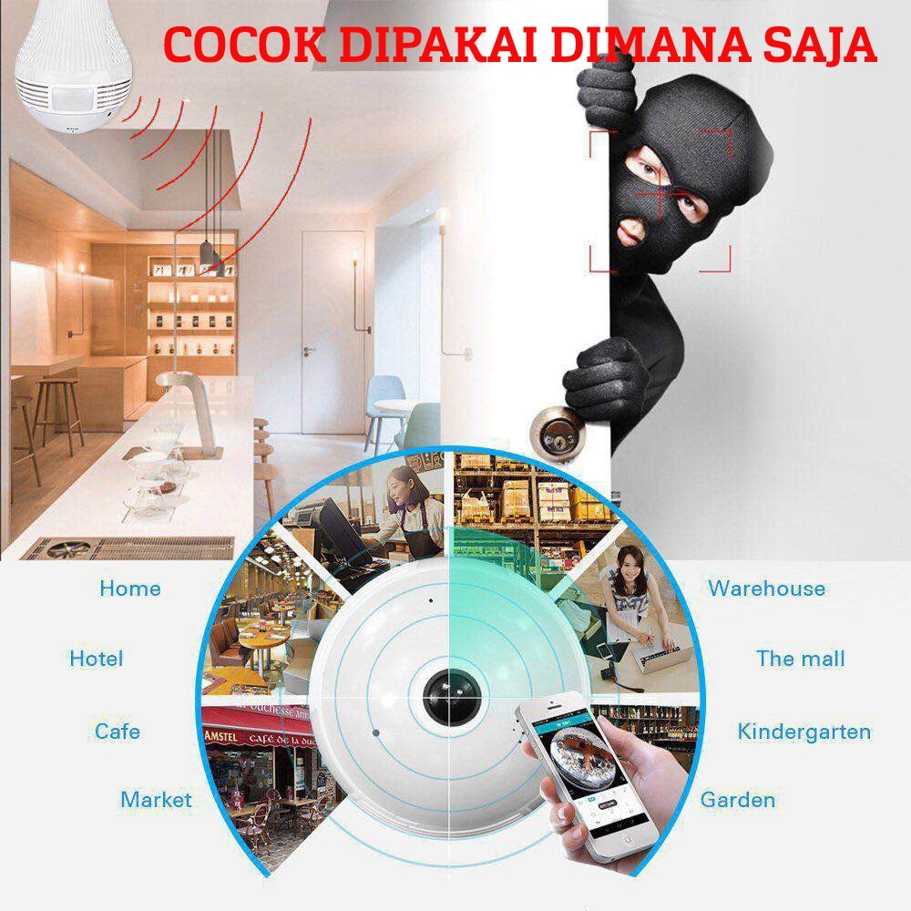 V380 PRO CCTV IP Kamera 360 Derajat Panoramic Fish Eye Spy Keamanan Tersembunyi 1080P PTZ HD