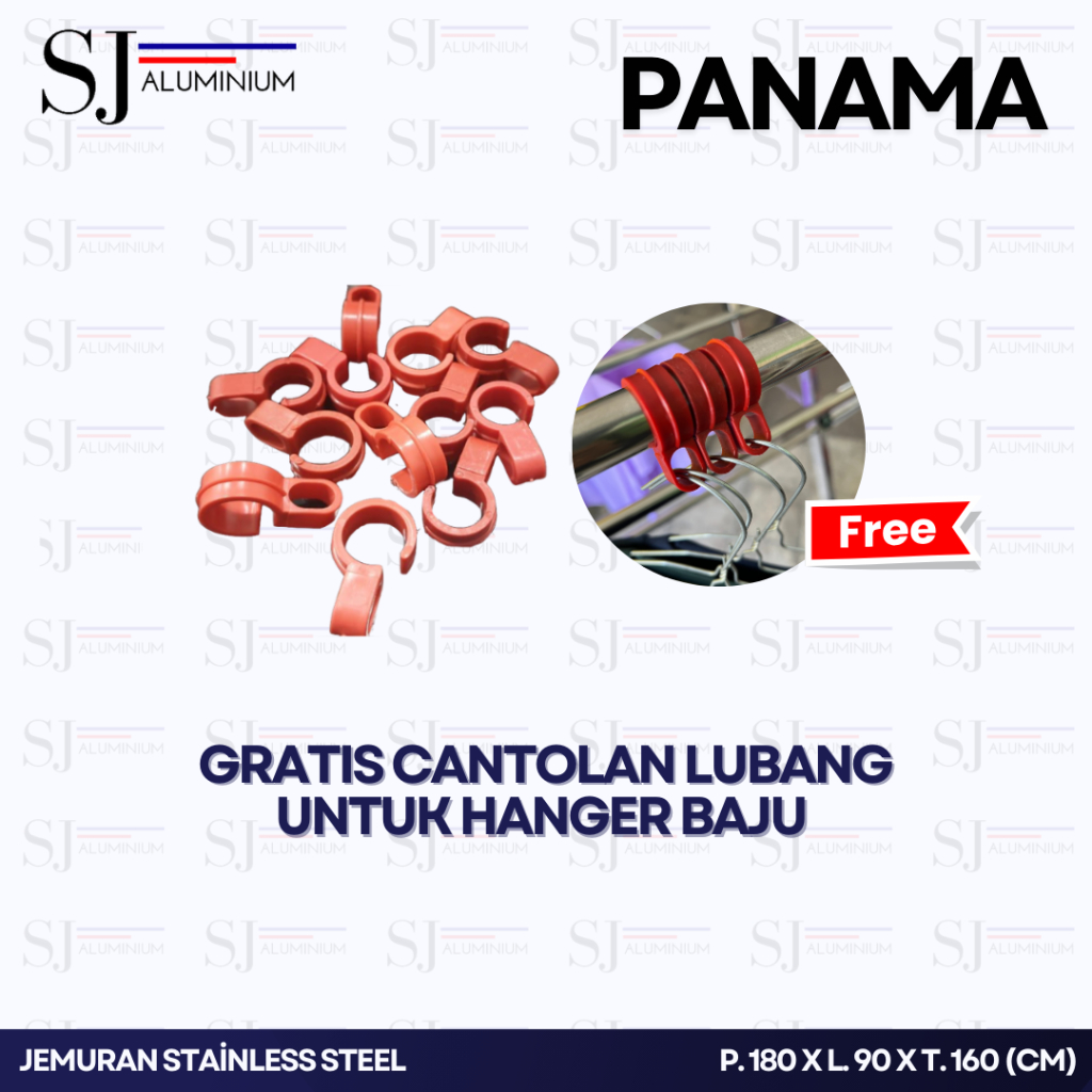 Jemuran Stainless Steel Jumbo PANAMA - Jemuran Baju / Pakaian / Rak Handuk - Jemuran Bayi - Palang 9 Tahan Beban 100 KG
