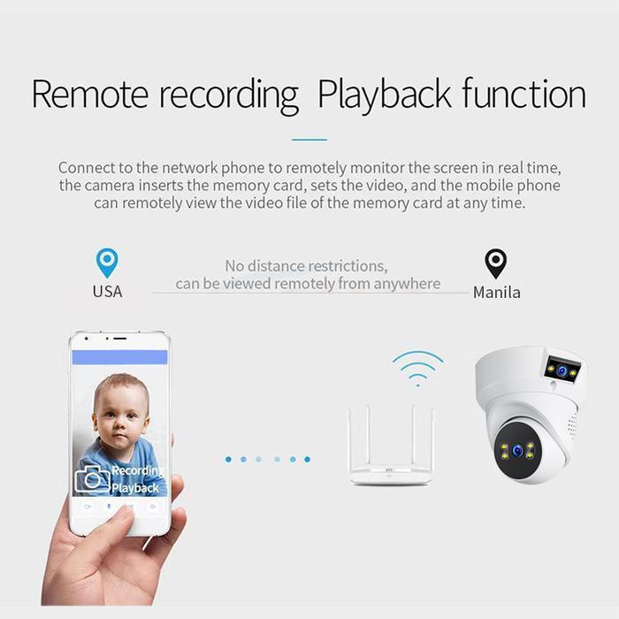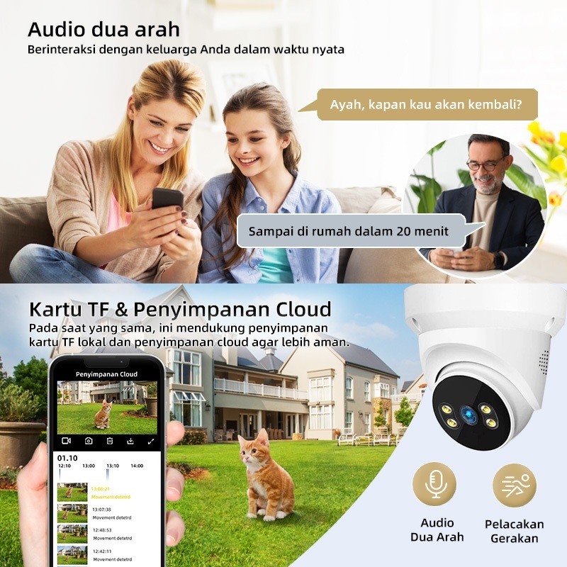 Kamera CCTV WiFi Dual Lensa HD 1080P Pantau Dua Sisi Sekaligus Malam Jelas Audio Dua Arah