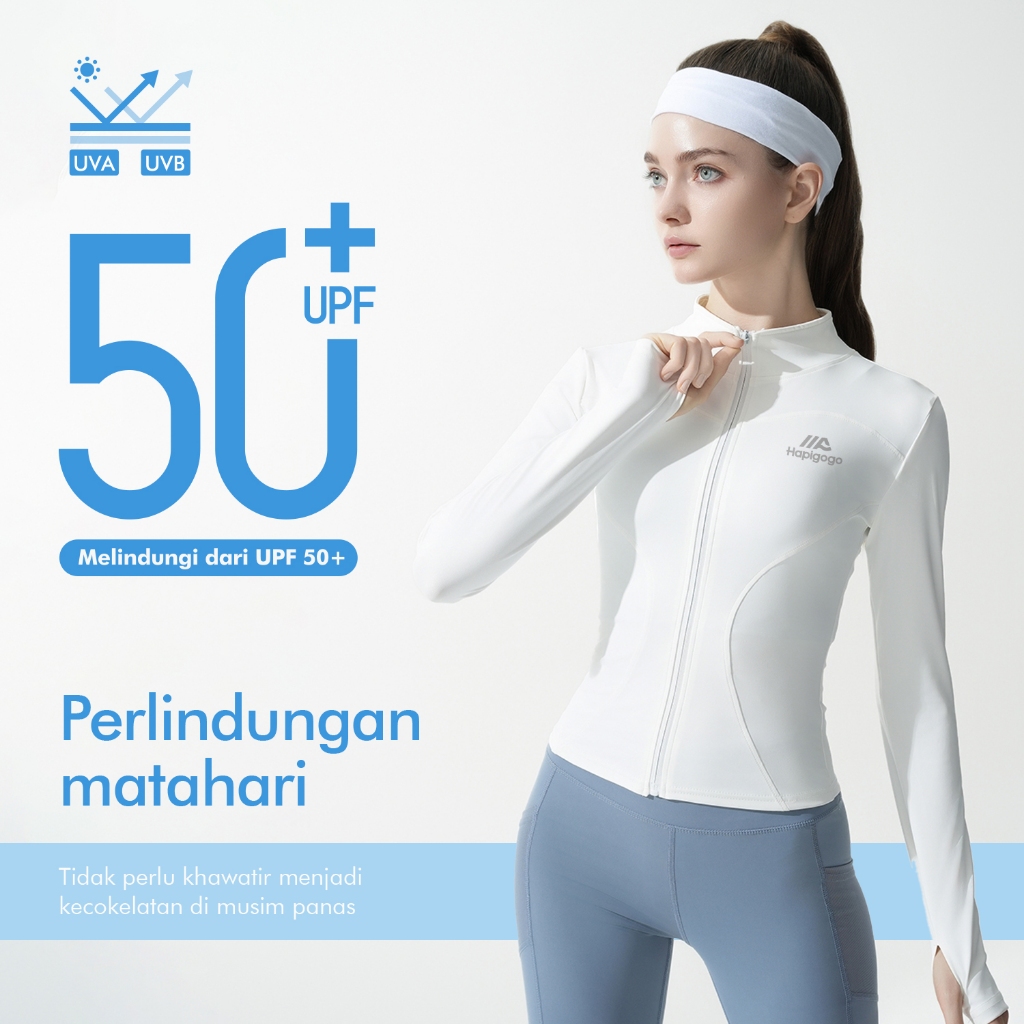 Hapigogo baju olahraga wanita Jaket Olahraga Wanita Lengan Panjang Untuk Yoga Jaket Anti UV Sport UPF50+