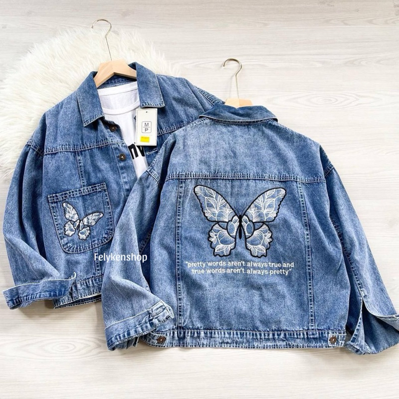 JAKET JEANS OVERSIZE BORDIR KODE MP 069 / JAKET DENIM WANITA / JAKET JEANS BORDIR