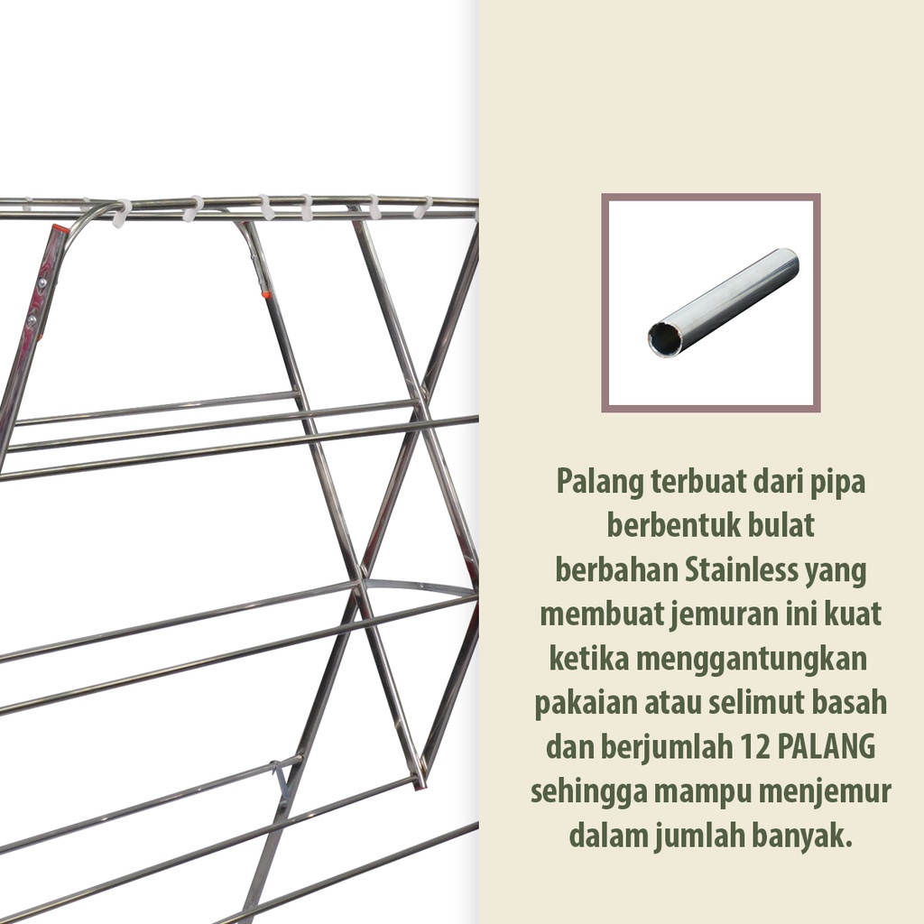 PROMO MENARIK Jemuran Baju Pakaian Stainless 12 Palang Anti Karat Super Murah - MUSTANG