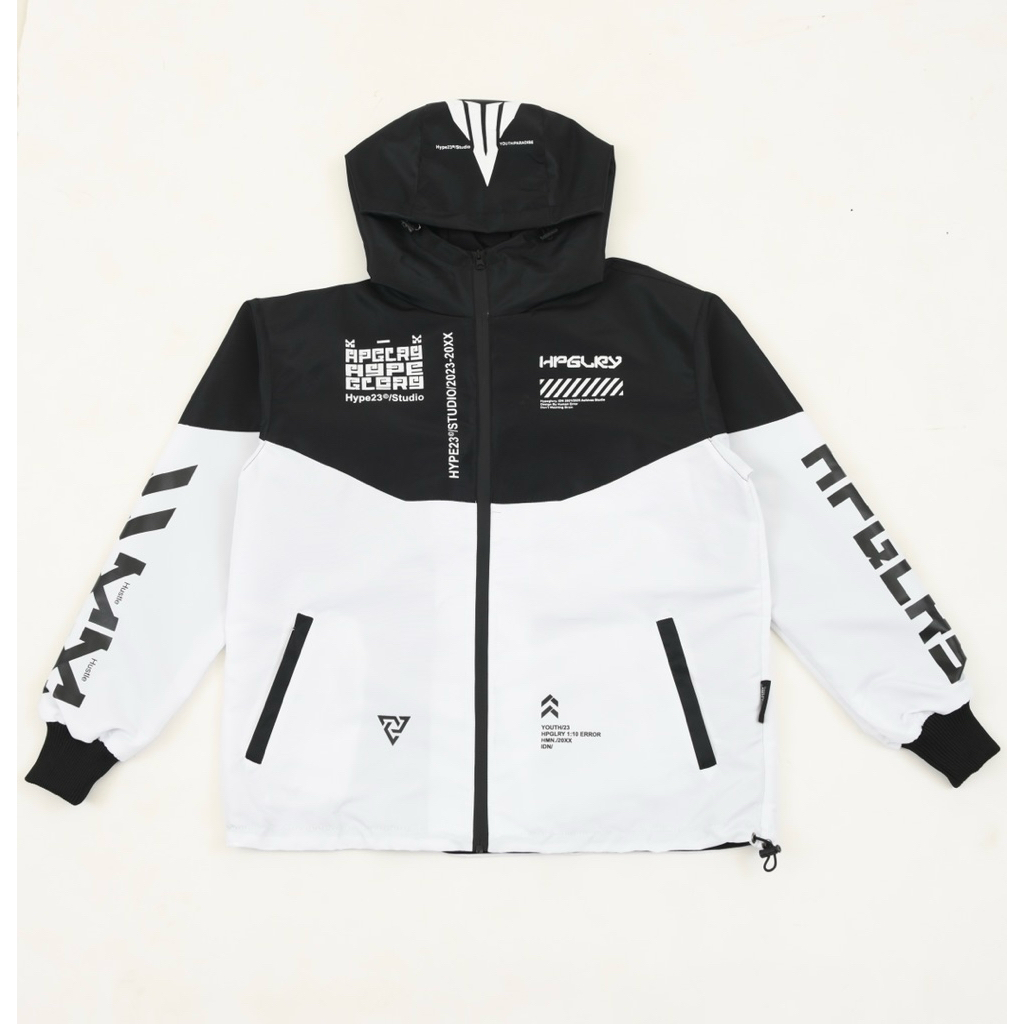 HypeGlory - Jaket Parka Outdoor Waterproof Bomber Windbreaker Pria Wanita Black White Sablon PVC Sport