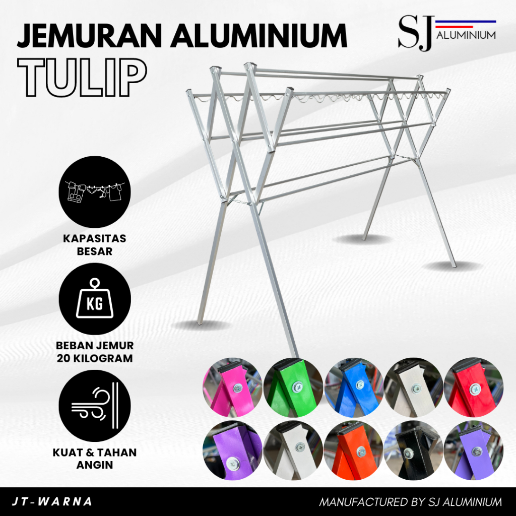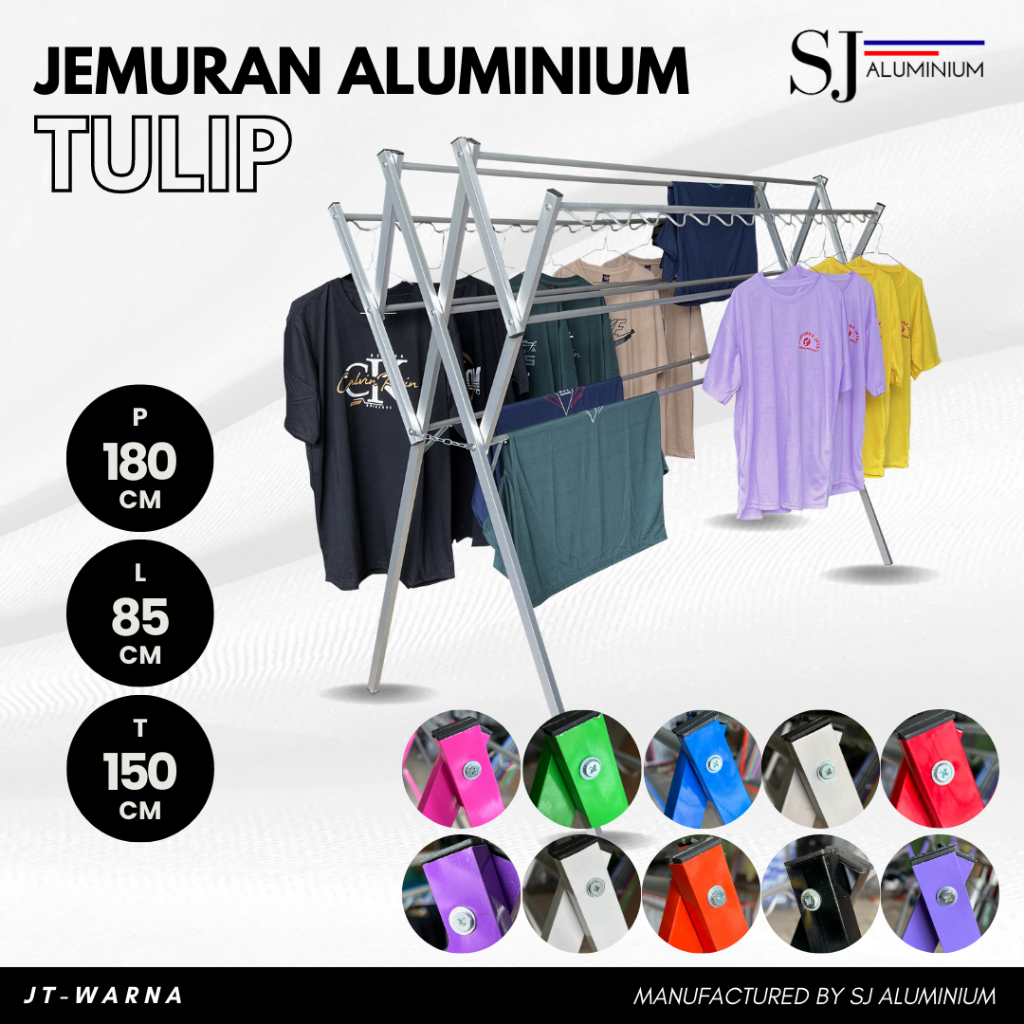 [TULIP] Jemuran Baju Aluminium / Rak Handuk Bayi Lipat / Jemuran Pakaian Gantung Hanger Aluminium Warna Palang 9 - 180 C