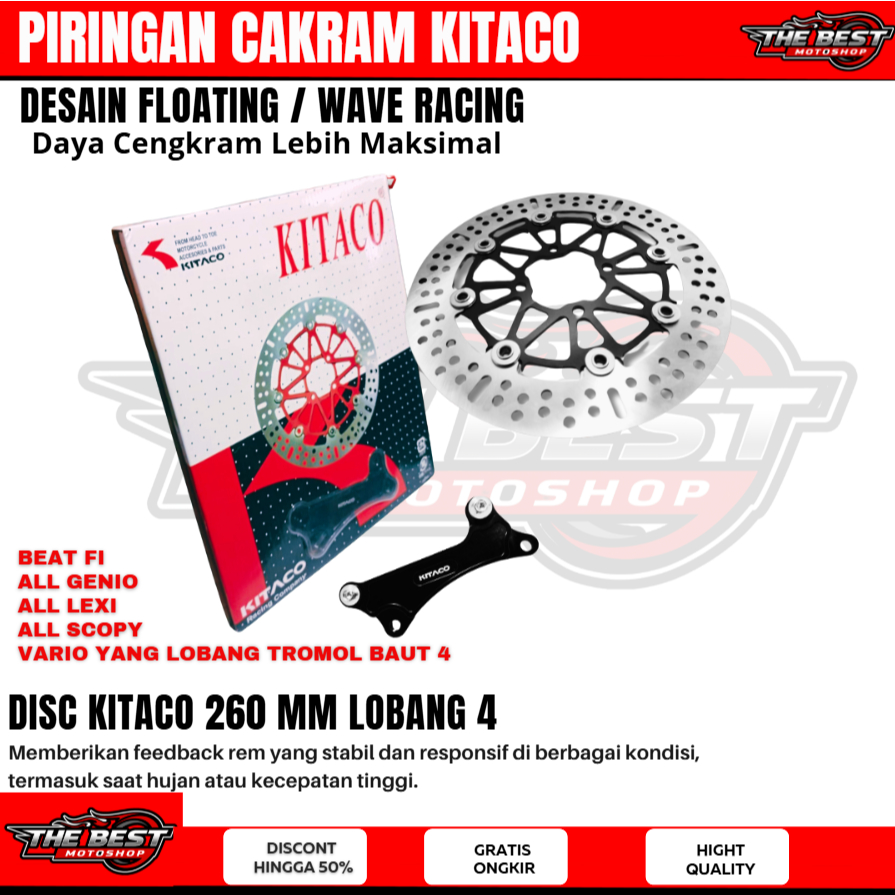 DISC KITACO 260MM LOBANG 5 PIRINGAN CAKRAM KITACO 260 MM HITAM PNP BEAT VARIO GENIO SCOOPY DLL