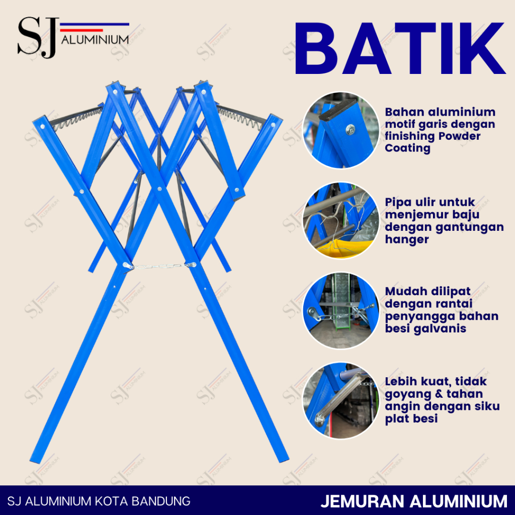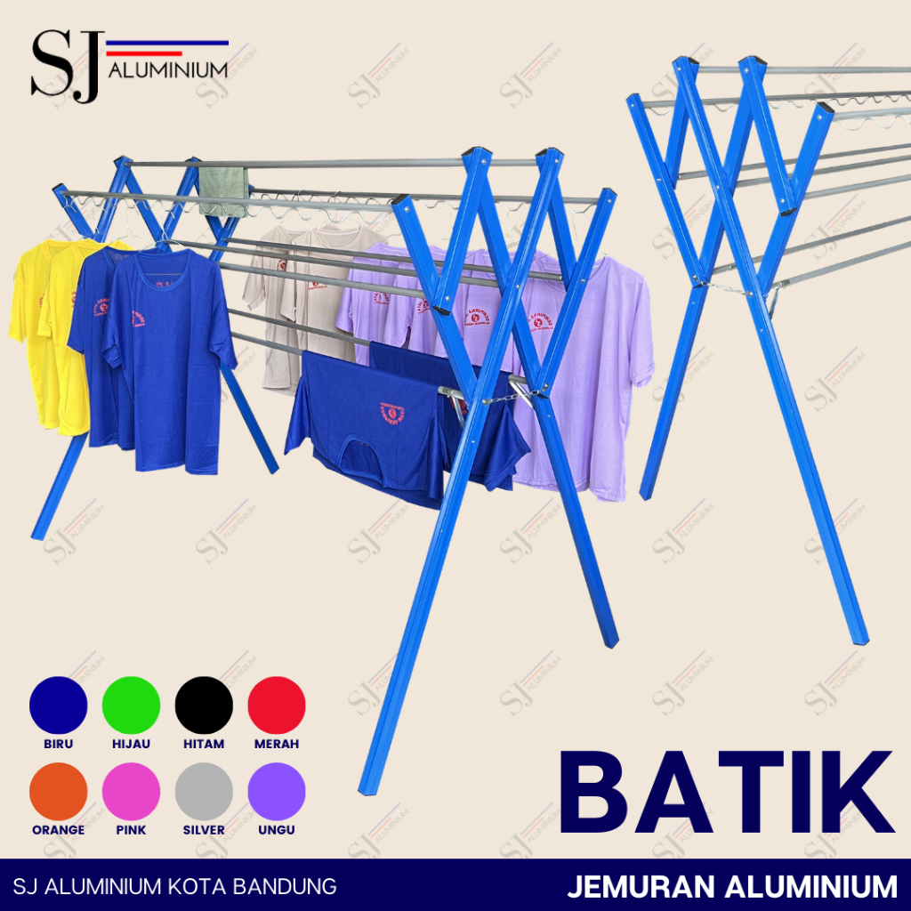 BATIK - Jemuran Baju Aluminium Jumbo 180 CM / Jemuran Pakaian Rak Handuk Lipat Warna / Motif Garis - Ukuran 1,8 M