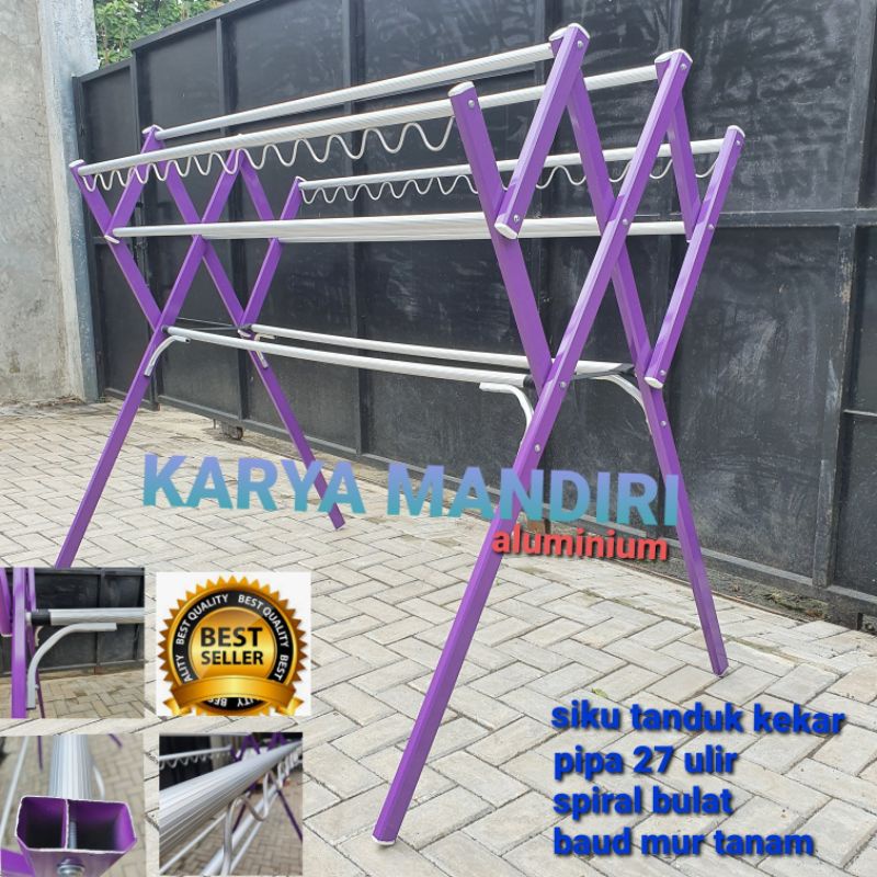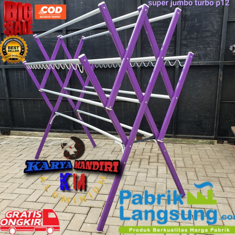 PREMIUM - Jemuran Baju Super Jumbo p12 / Pakaian / Lipat / Aluminium Warna /180 CM / Ungu