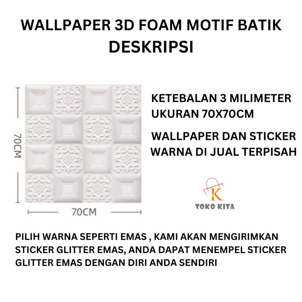 Paket 10 Lembar Wallpaper Dinding 70x70cm 3D WallFoam, Brick Foam Sticker Dinding Batik