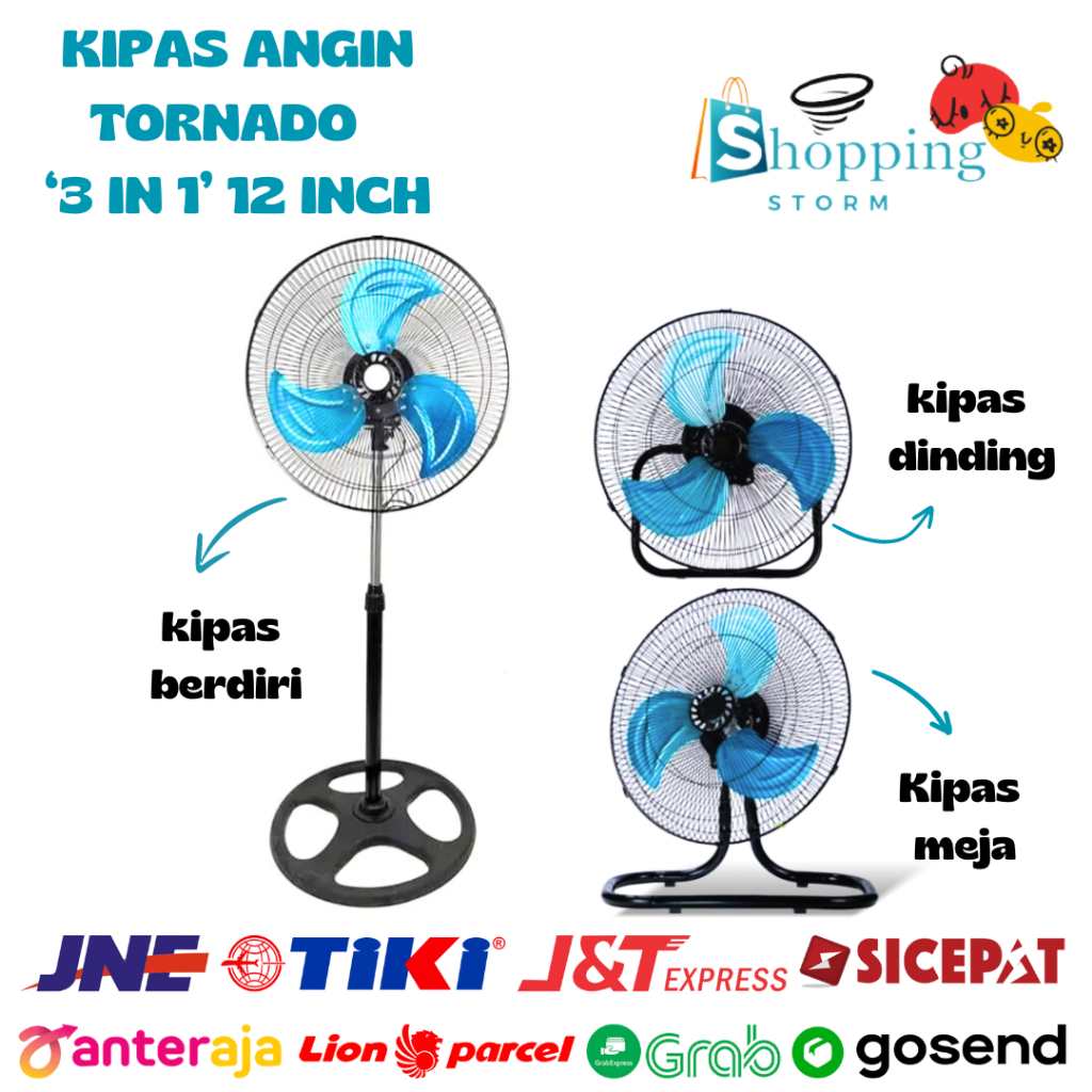 Kipas Angin Tornado Besi 3in1 12Inch Stand Fan Desk Fan Wall Fan-1218