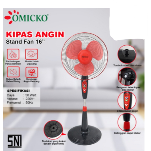 NGY / YASAKA / OMICKO Stand Fan / Kipas Angin Berdiri 16 Inci