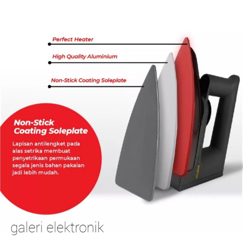 Setrika Listrik Maspion EX-1010 Blackberry dengan lapisan anrti lengket