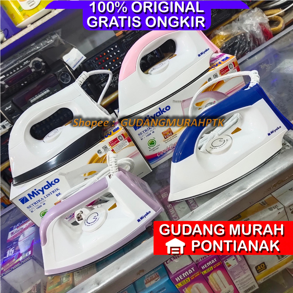 Setrika miyako EL 1000 / 1008 M Penggosok Iron rapi anti lengket teflon Pink Putih