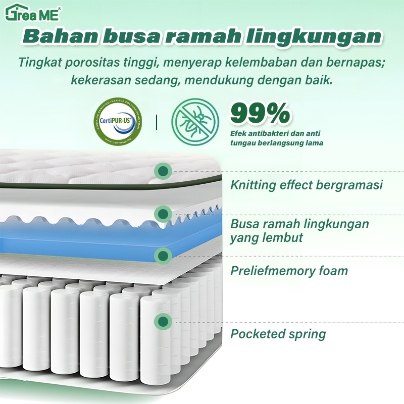 Kasur Pe Saku Dengan Ketebalan 20/26cm Busa Memori Kepadatan Tinggi Termasuk Kasur Anti Alergi