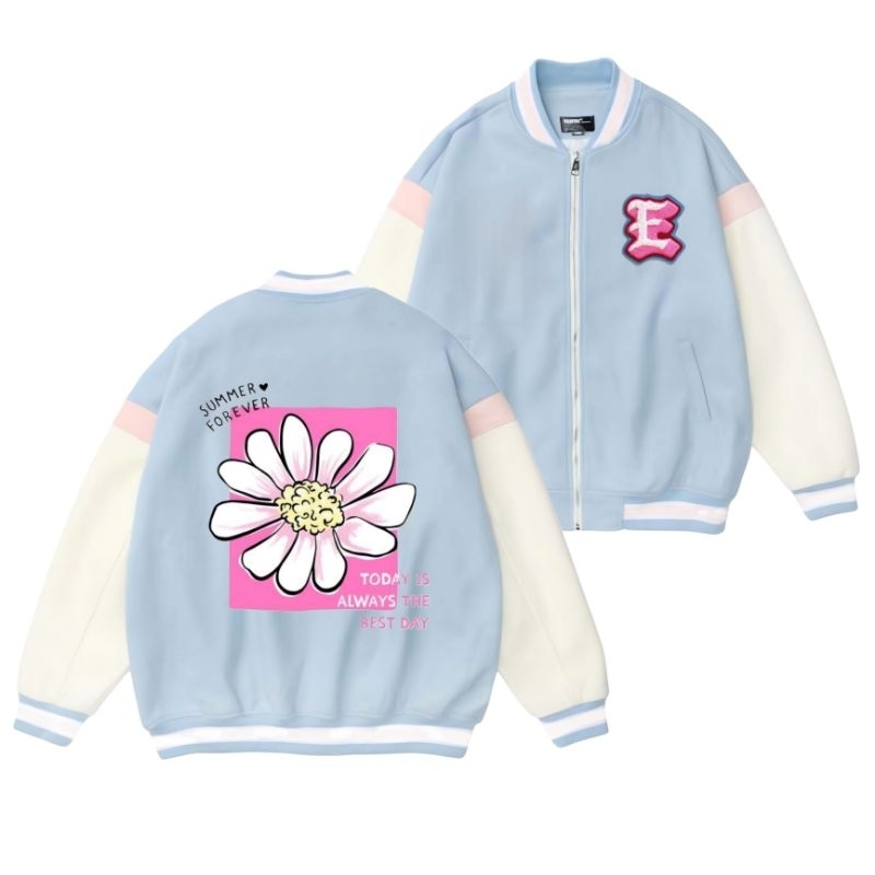 Jaketin Aja - Varsity Bomber Big Size ( S - 6XL ) DAISY FLOWER BEST DAY ( CUSTOM HURUF INISIAL ) Korean Ulzzang Street S