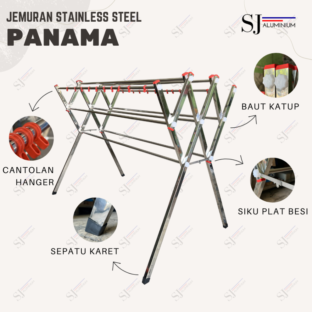 PANAMA - Jemuran Stainless Steel Jumbo 180 CM / Jemuran Baju & Pakaian & Handuk Lipat / Palang 9 - 180 CM / 1,8 Meter