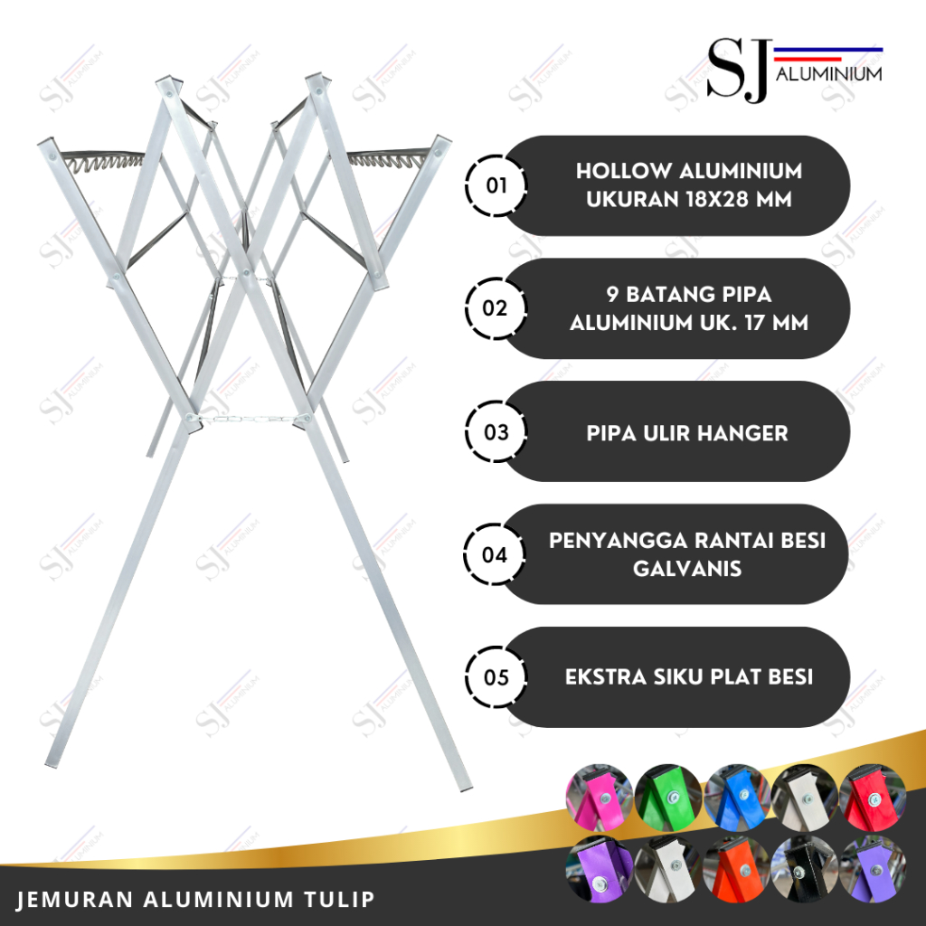 SJALUMINIUM - Jemuran Baju Aluminium / Jemuran Pakaian Lipat / Rak Handuk Bayi / Tulip Warna 1,8 Meter [180CM]