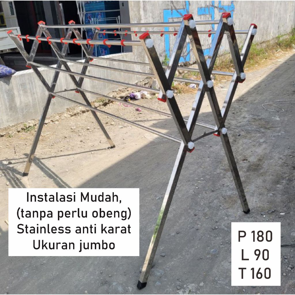 JEMURAN STANLESS STEEL JUMBO 180 CM / RAK BAJU HANDUK LIPAT ANTI KARAT