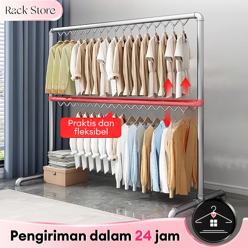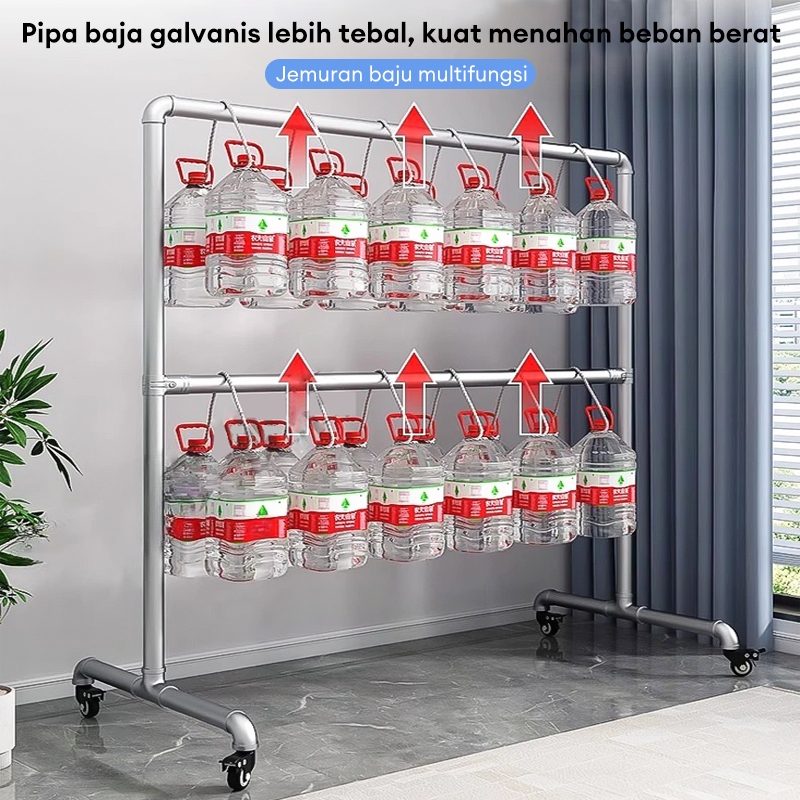 200CM Jemuran Baju Stainless 2 Susun Tabung Baja Jemuran Gantungan Baju Dengan Tahan Angin Jumbo