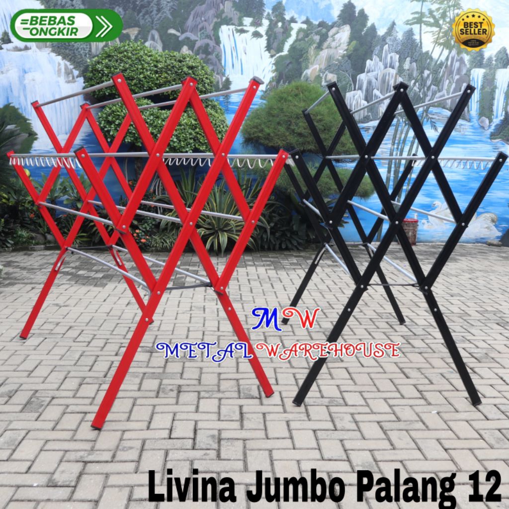 BEST SELLER - Jemuran Baju Livina jumbo p12 / Pakaian / Handuk / Lipat / Aluminium 1,8 Meter