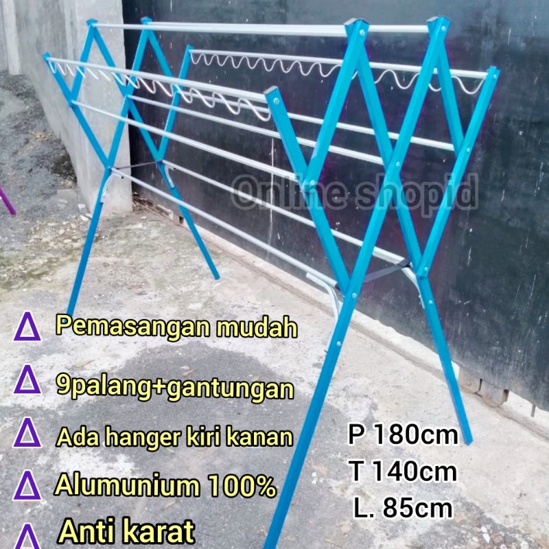 JEMURAN BAJU 9 PALANG BERKUALITAS ANTI KARAT. 180CM