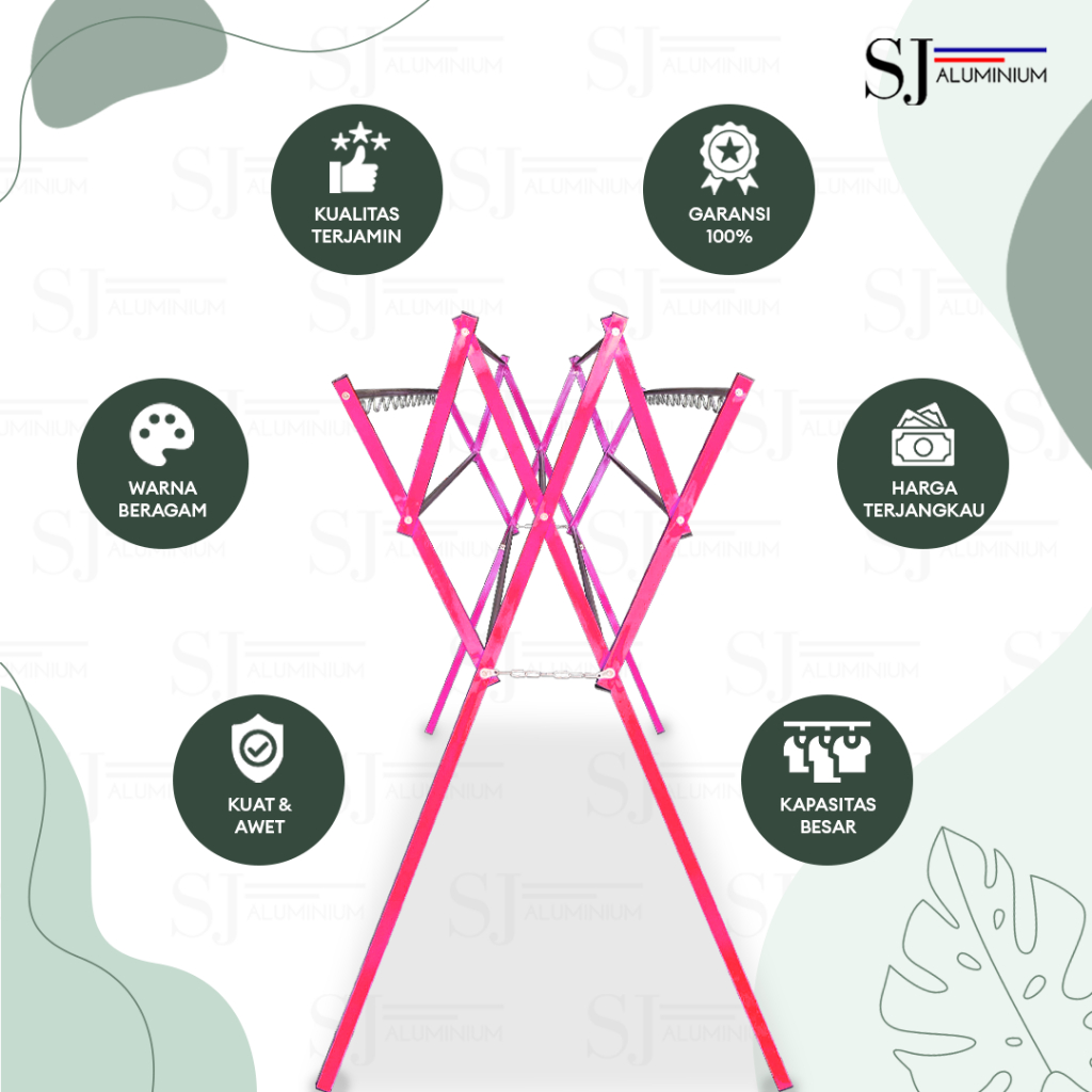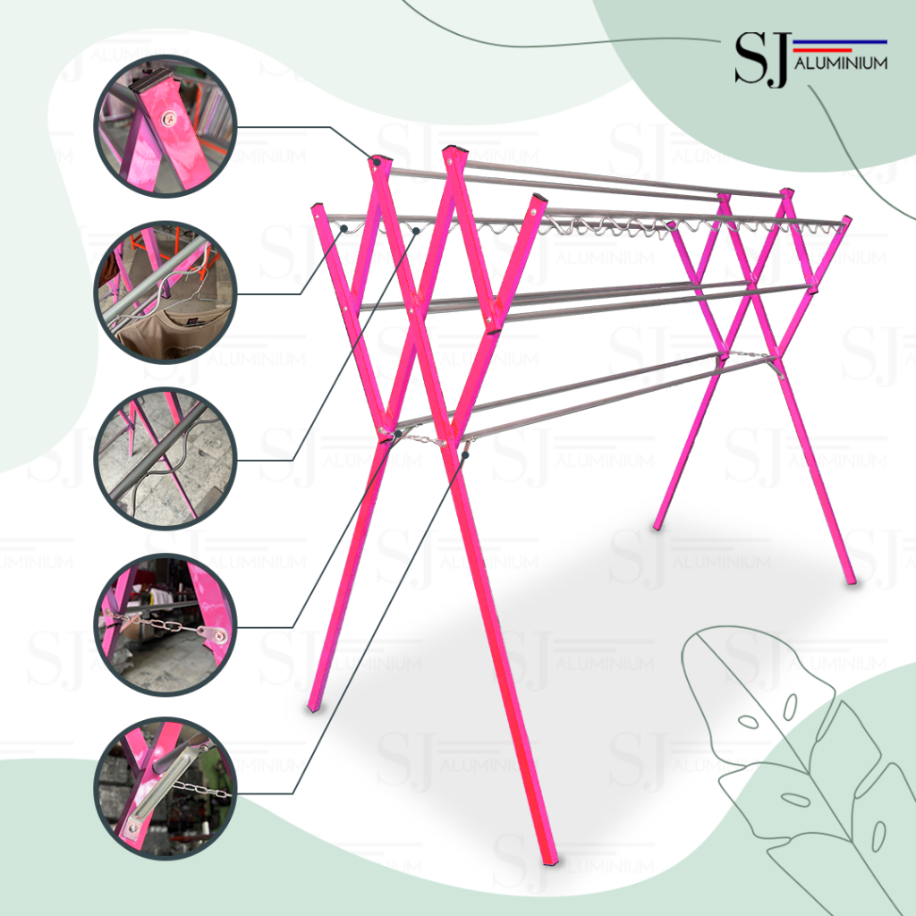 [TULIP] Jemuran Aluminium Jemuran Baju & Pakaian Rak Handuk Jemuran Lipat Jemuran Bayi Palang 9 PINK - 180 CM / 1,8 Mete