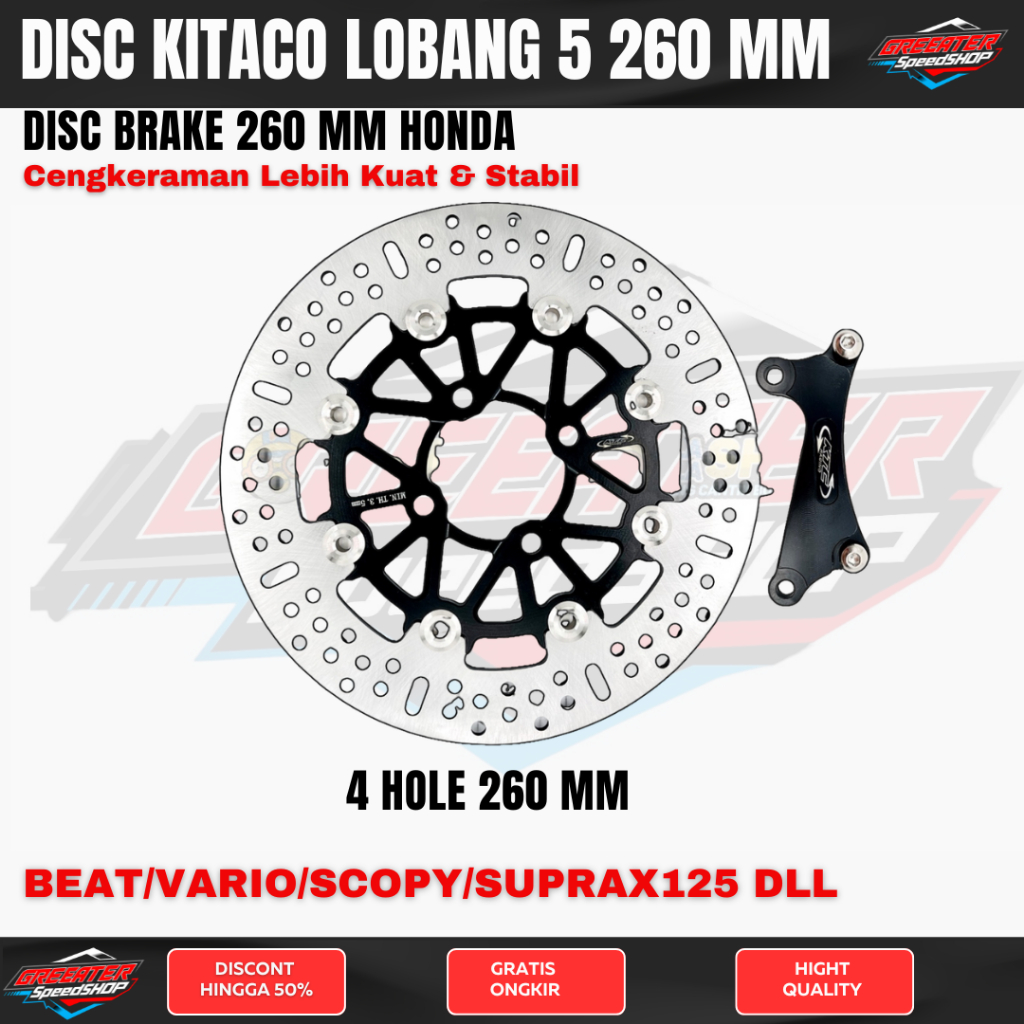 Piringan Cakram 260 mm 5 Holle beat vario scopy lobang 4 Dan lobang 4 full cnc Ploating Plush Breket