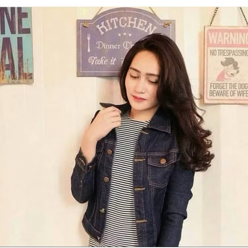 Jaket Jeans Wanita Denim Hijau Army Bahan Berkualitas Tebal Slim-fitting Polos Kancing Kulit Crop Hitam Cewek jaket vars