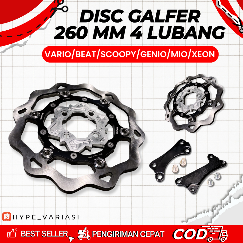 DISC PIRINGAN CAKRAM GALFER WAVE LUBANG 4 260 MM DISK GALFER 260 MM VARIO MIO SCOOPY GENIO BEAT FINO
