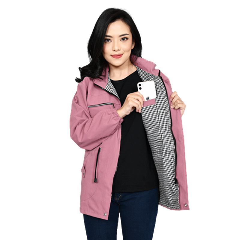 Jaket Wanita Tebal Premium Ori Korean Style Original Bahan Baby Canvas Warna Pink Dusty