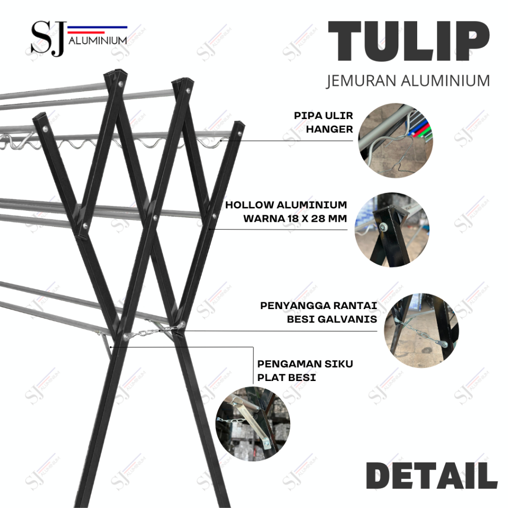 SJALUMINIUM - Jemuran Baju Aluminium / Jemuran Pakaian Lipat / Rak Handuk Bayi / Tulip Hitam 1,8 Meter [180CM]