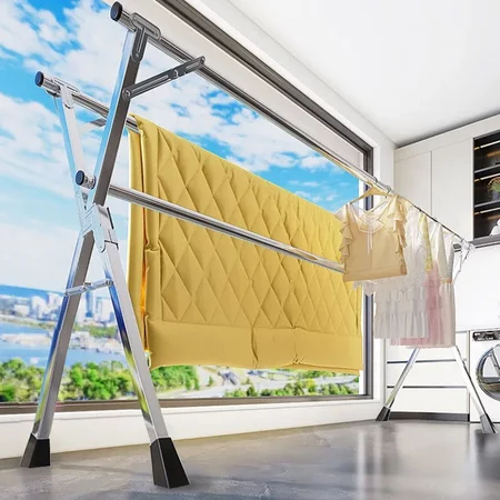 Jemuran Baju Stainless Steel Gantungan 3 Tiang Rak Pakaian Hanger Outdoor / Indoor 3 Plong SUS-304 Lipat Portable