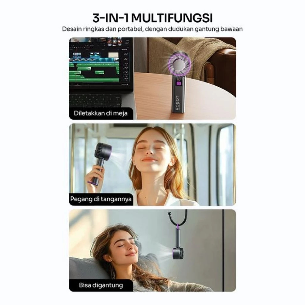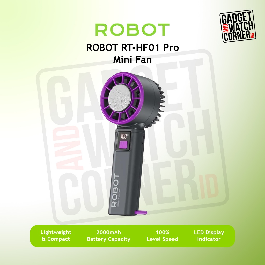 ROBOT RT-HF01 Pro Mini Fan Highspeed LED Display 2000 mAh Kipas Angin Mini Genggam