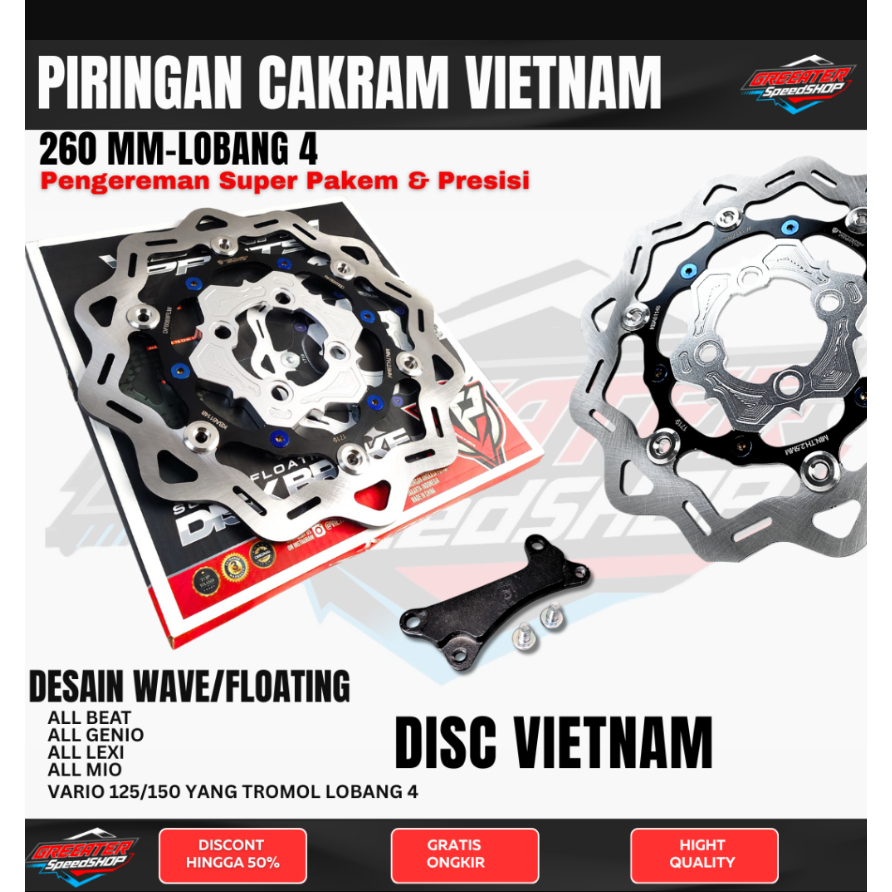 Piringan Disc Cakram Vietnamparts Galfer 260mm Beat Scoopy lobang 4 Nmax/aerox Lobang 3 Vario 160 Mio Genio Vario 125 /