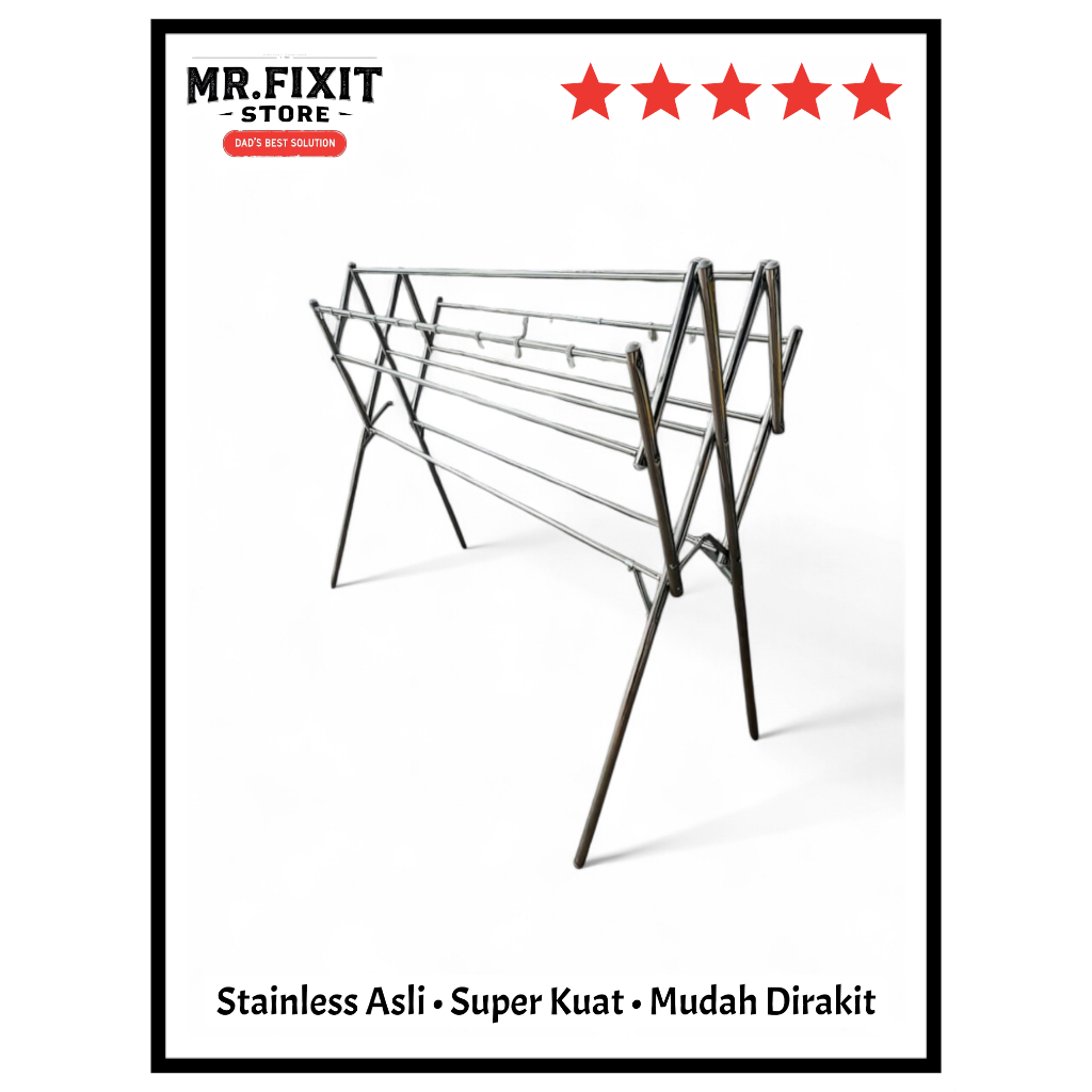 Jemuran Baju Stainless Lipat | 9 Palang + 20 Gantungan | Anti Karat & Kuat | Hemat Tempat