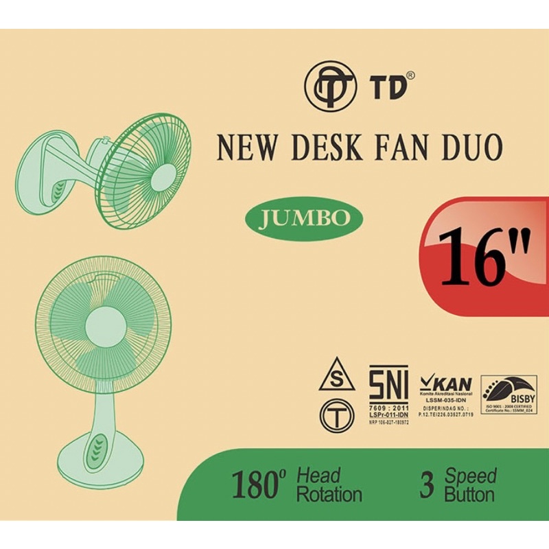Desk Fan Duo 16” 16inch Kipas Angin Meja Kipas Angin Dinding Wallfan Deskfan